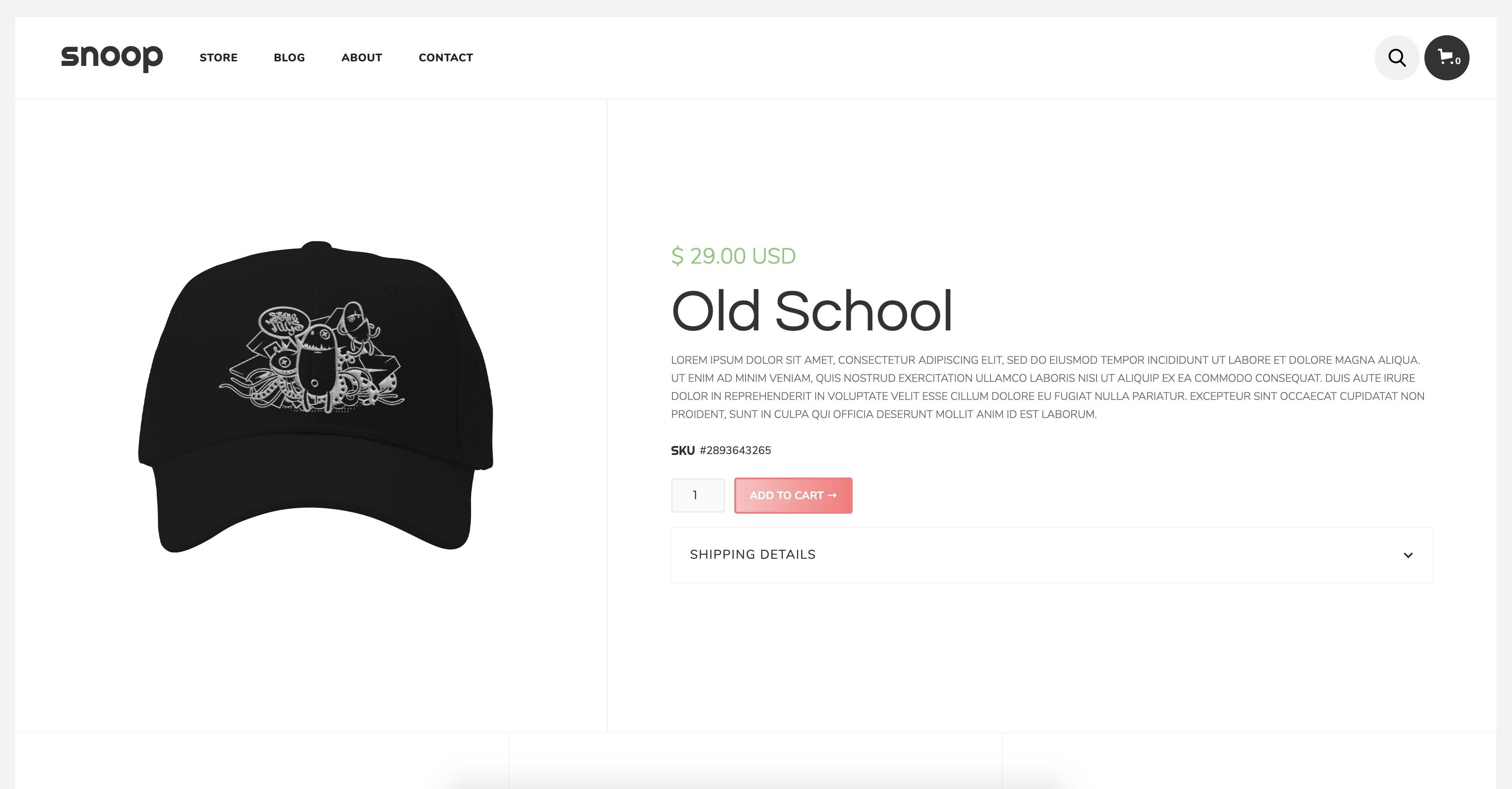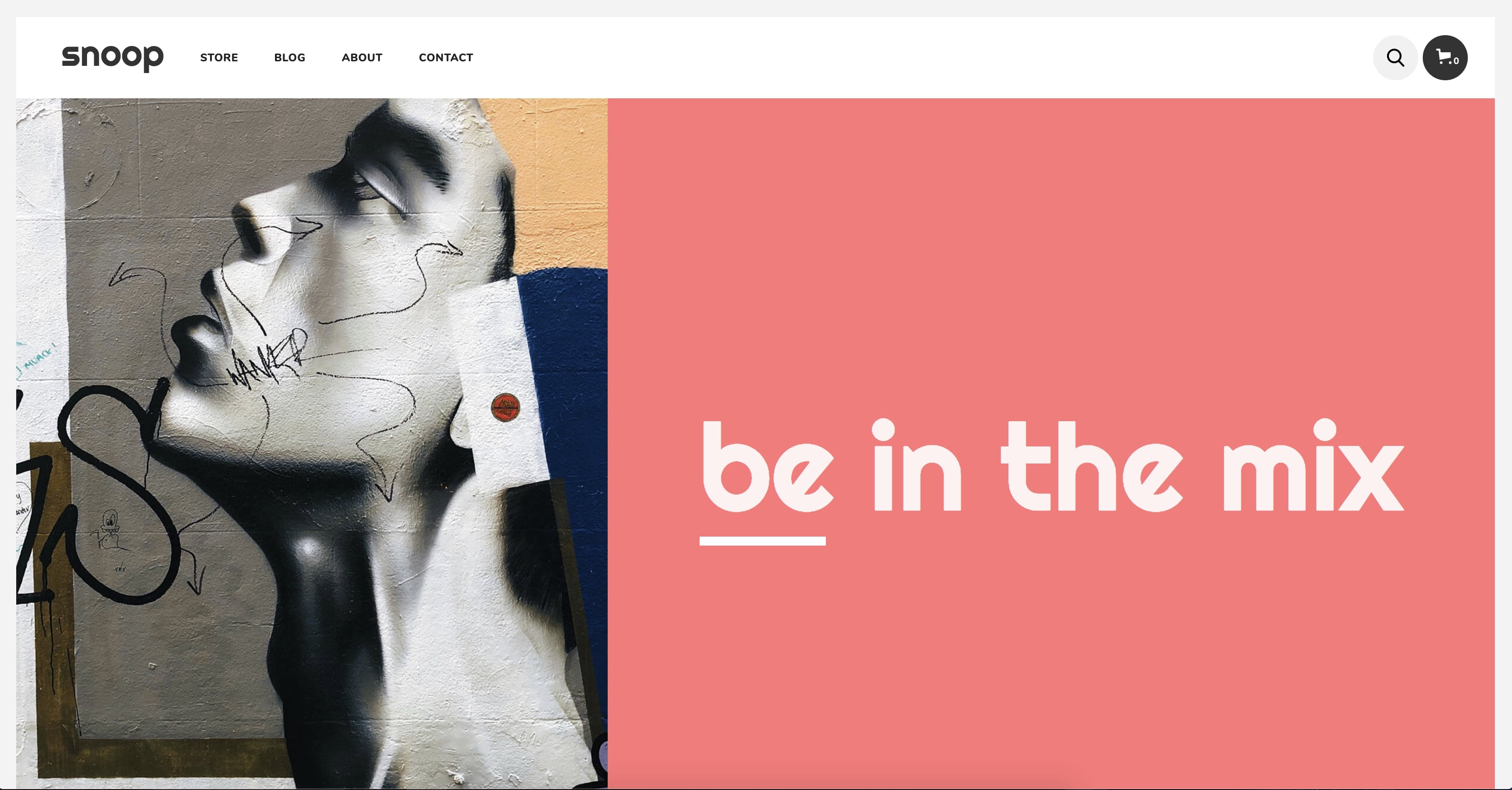 Designed by Udesly, Snoop has a hip, urban vibe, making it a great ecommerce website template for big-city fashion and lifestyle-related brands.
