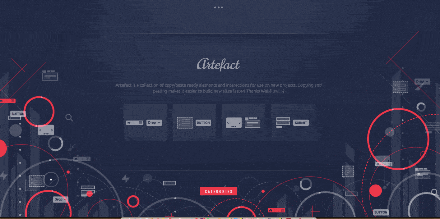 Artefact offers free Webflow components like nav, link, pane, and form elements that can be integrated into any Webflow design. They offer a handy library of resources in a layout with an abstract sensibility and dreamy animations.