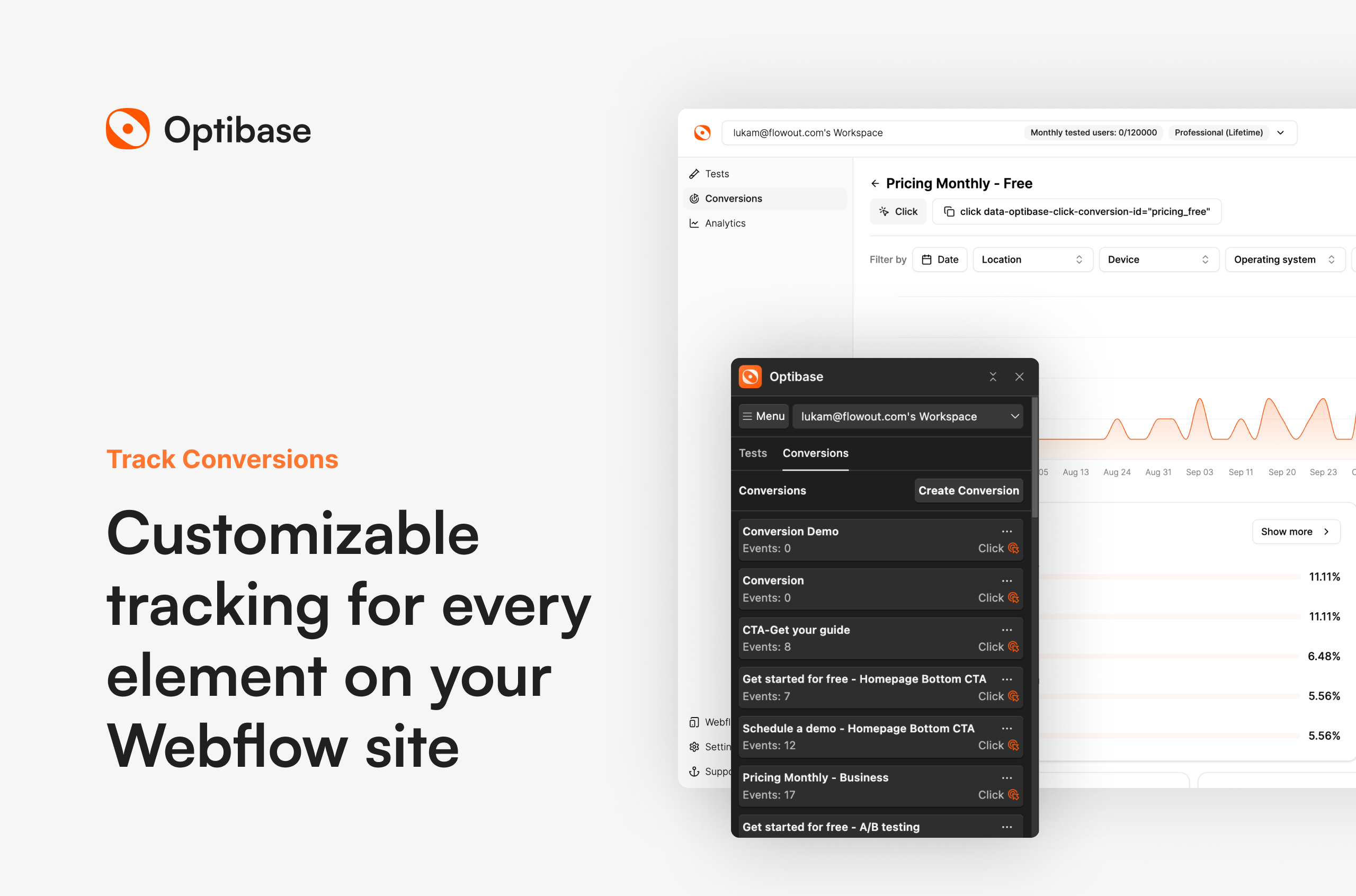 Say goodbye to guessing and hello to data-driven decisions with Optibase's A/B and split testing app for Webflow. Test everything from copy to design or even entire pages and improve your conversions.