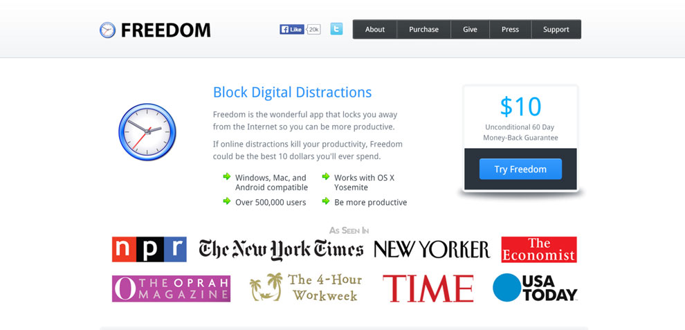 Writing is hard, so it’s easy to get distracted. And there’s nothing more distracting than the internet, with its constant calls to check your email, cruise Facebook, or seek out hilarious GIFs. The solution: turn off your internet access. Yes, you totally could do that yourself, but that’s too easy. With Freedom, you’ll have to restart your computer to get internet access back, which could be just enough to keep you scribbling.