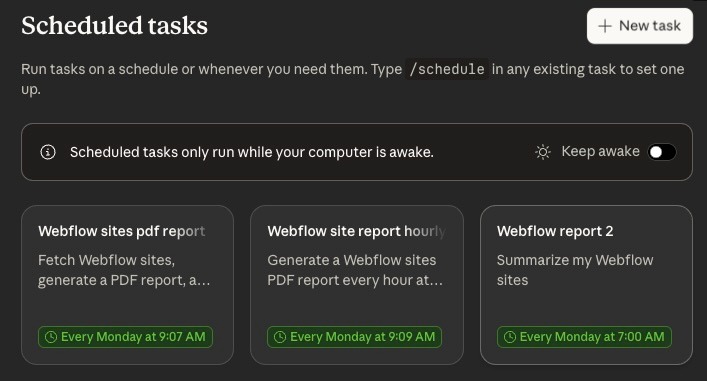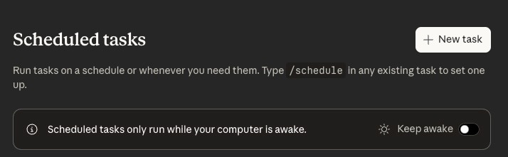 One thing to note: Claude clearly warns you that if your machine goes to sleep, so will the task. If this is a concern for you, be sure to enable that toggle to keep the machine awake.