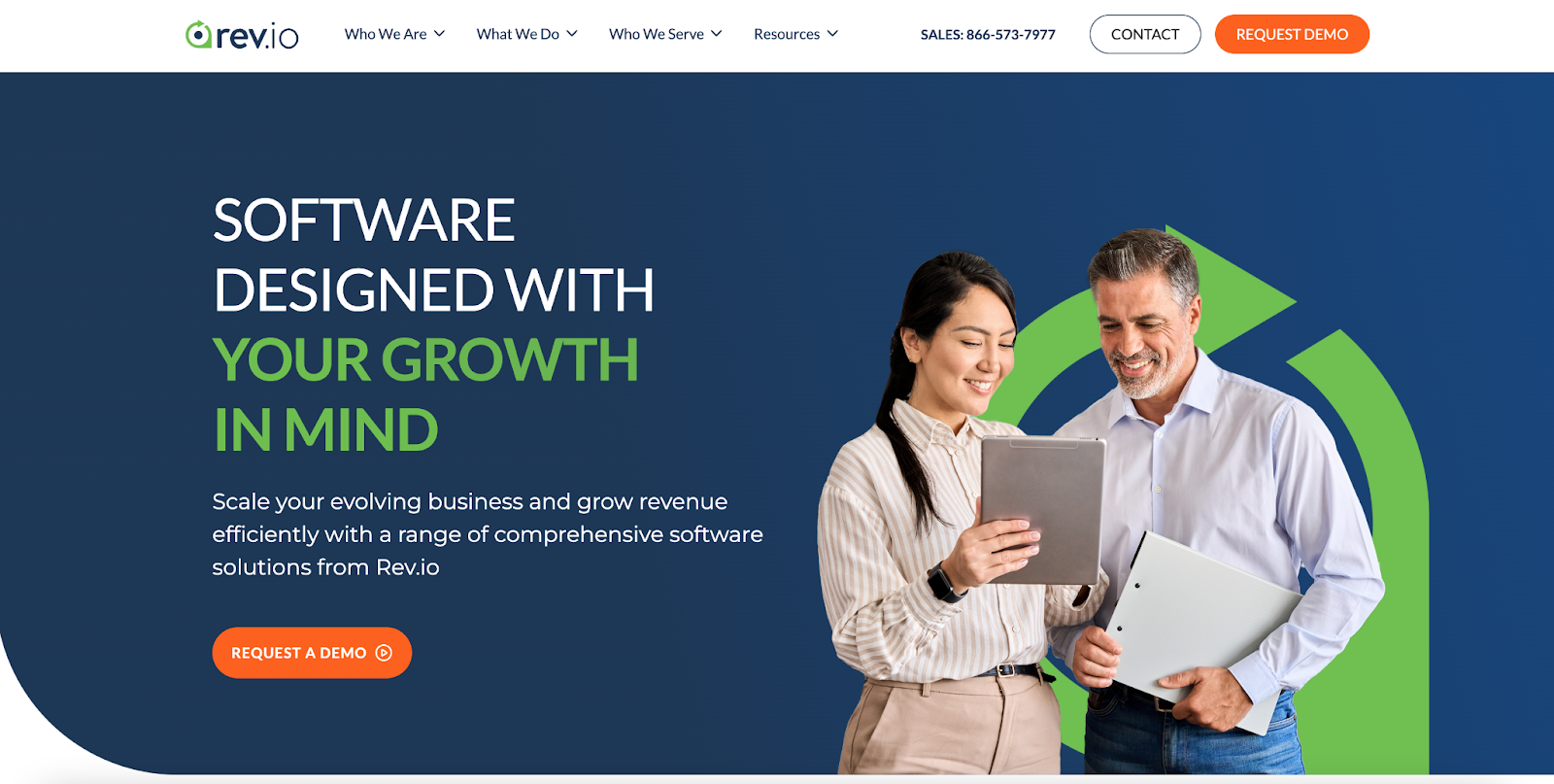 Billing software provider, Rev.io, leverages a self-referential headline to communicate that their software is configurable and flexible. Rather than using the headline to tell visitors what they can achieve by using Rev.io, they let prospective buyers know that Rev.io’s software was purpose-built for them.
