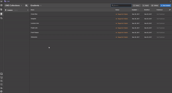 Now we’re going to add our CMS Items. In the top right, click the New Gradient button.