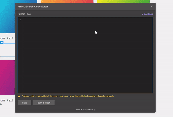 Now add another HTML Embed to the background-gradient div. When the HTML panel opens, add the following snippet:
