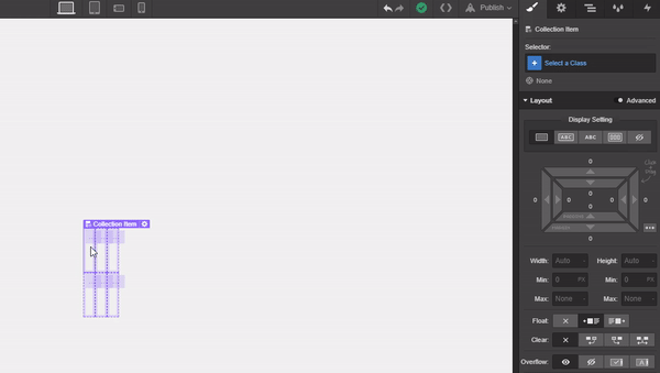 Select one of the collection items, give it a class of “Collection Item,” and add a top and bottom margin of 10px (the left and right have 10px by default).