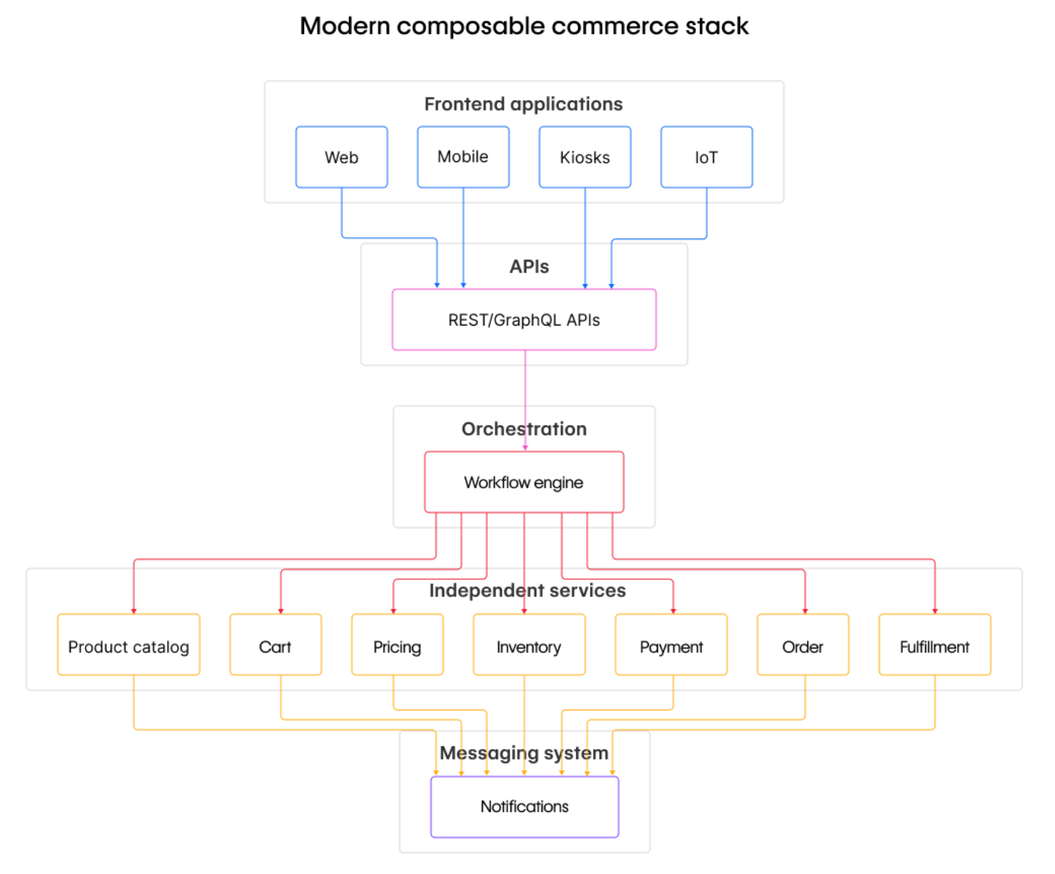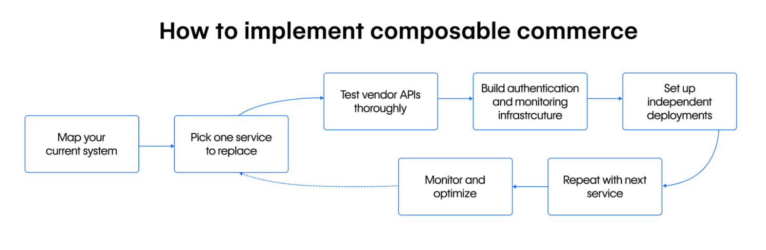 Composable commerce replaces the monolithic approach with a modular architecture.