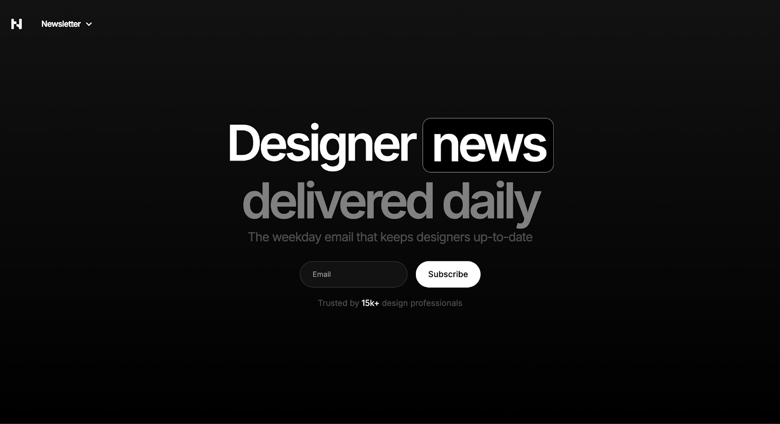 Today in Design’s website is an excellent example of contrast in a website— the white headline has nothing around it except an email form and a subscribe CTA button. The negative space lets these elements stand out while conveying information and encouraging visitors to act.