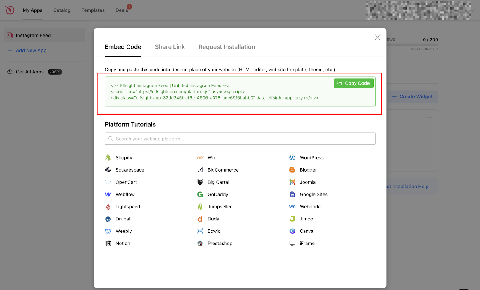 Step #3: Get the embed code for your Instagram feed Webflow widget