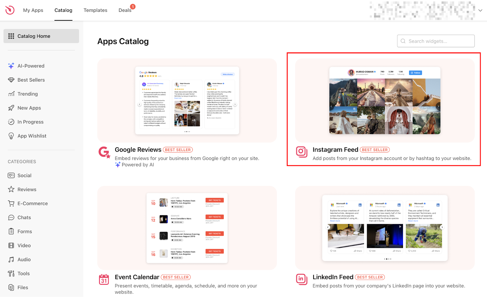 Create an account at elfsight.com, and select Instagram Feed from the apps menu.