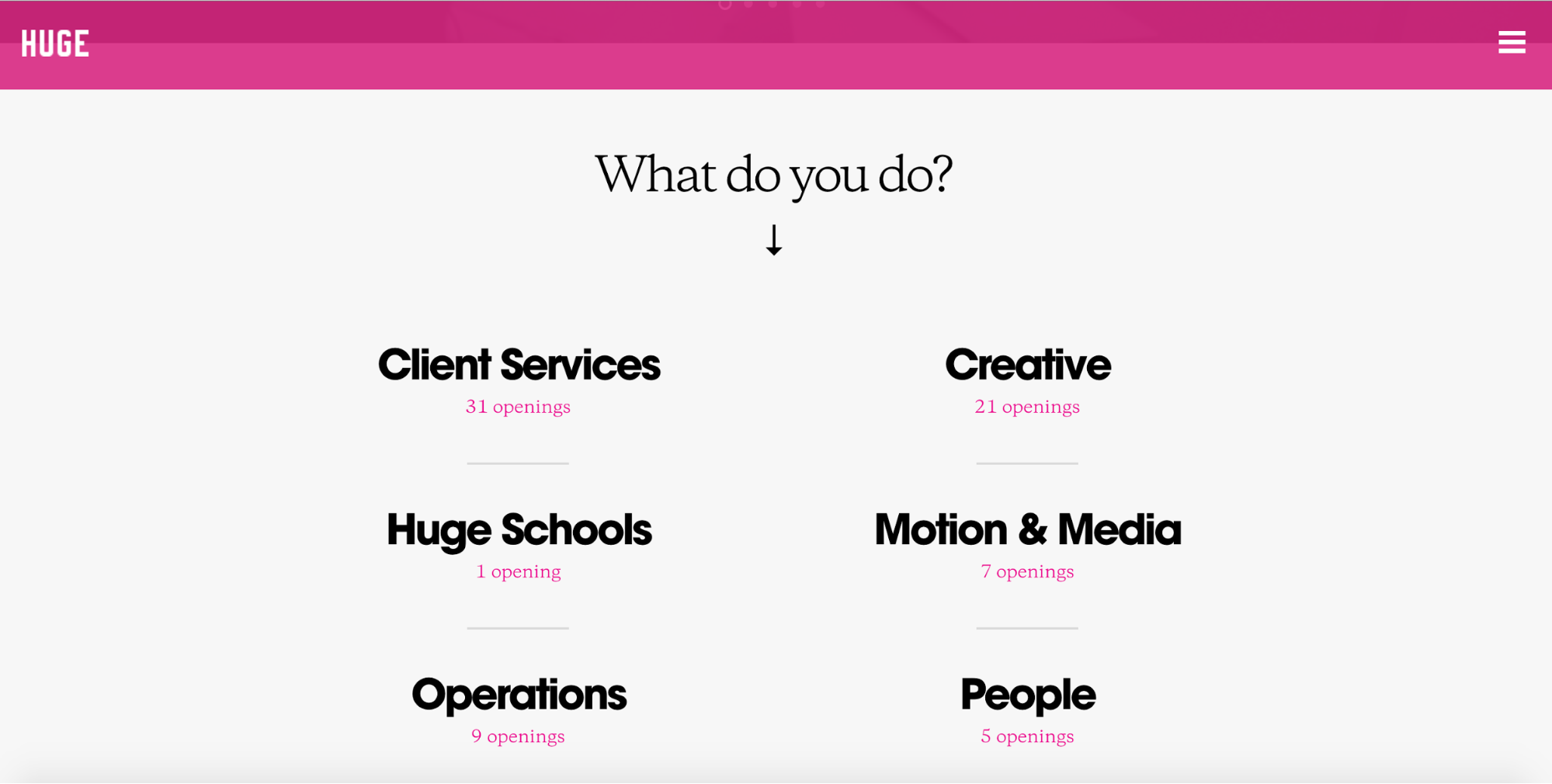 But if you have more than a handful of open jobs and can pony up for search, do it. And if you can’t, remember that the great thing about search is that enables immediate and direct access to the roles I want. Not the departments. So use that as inspiration for your jobs page’s UX design, and you’ll be starting off on the right foot.