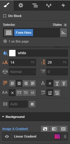 Now add another div to the modal wrapper above the form, call it “Form Hero,” and apply bottom margin of 20px and these padding settings:
