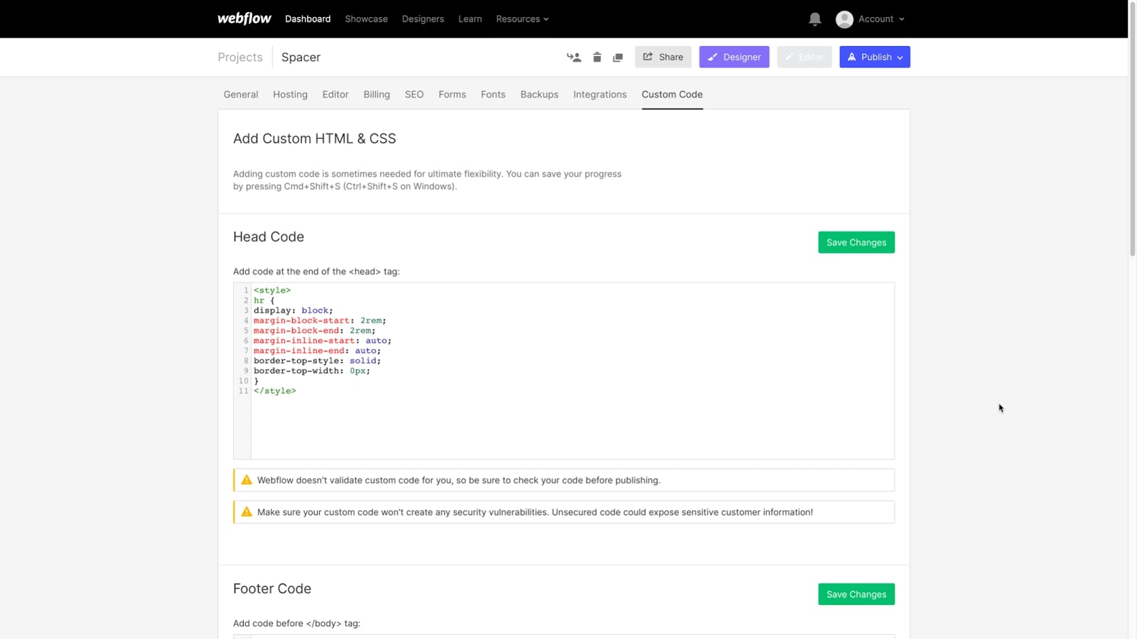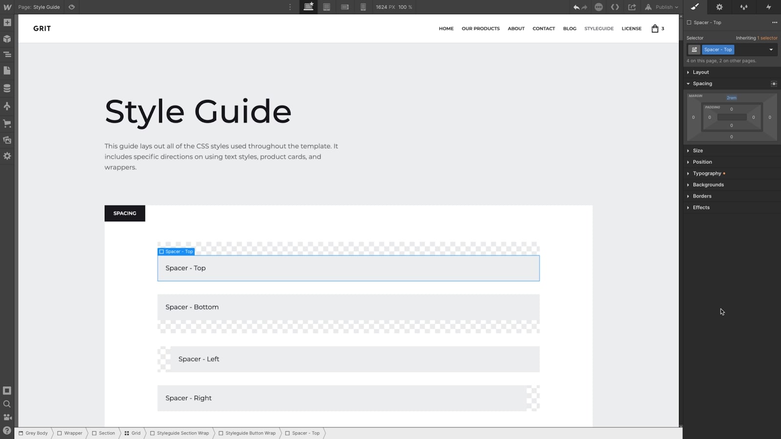 Using classes to add space as opposed to setting individual margins on each element in a page creates cleaner, more streamlined CSS. Classes in Webflow work exactly like classes in CSS.