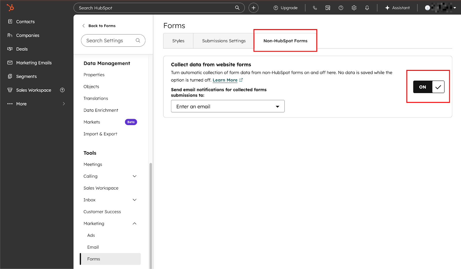 Step #3: Enable non-HubSpot form collection in HubSpot