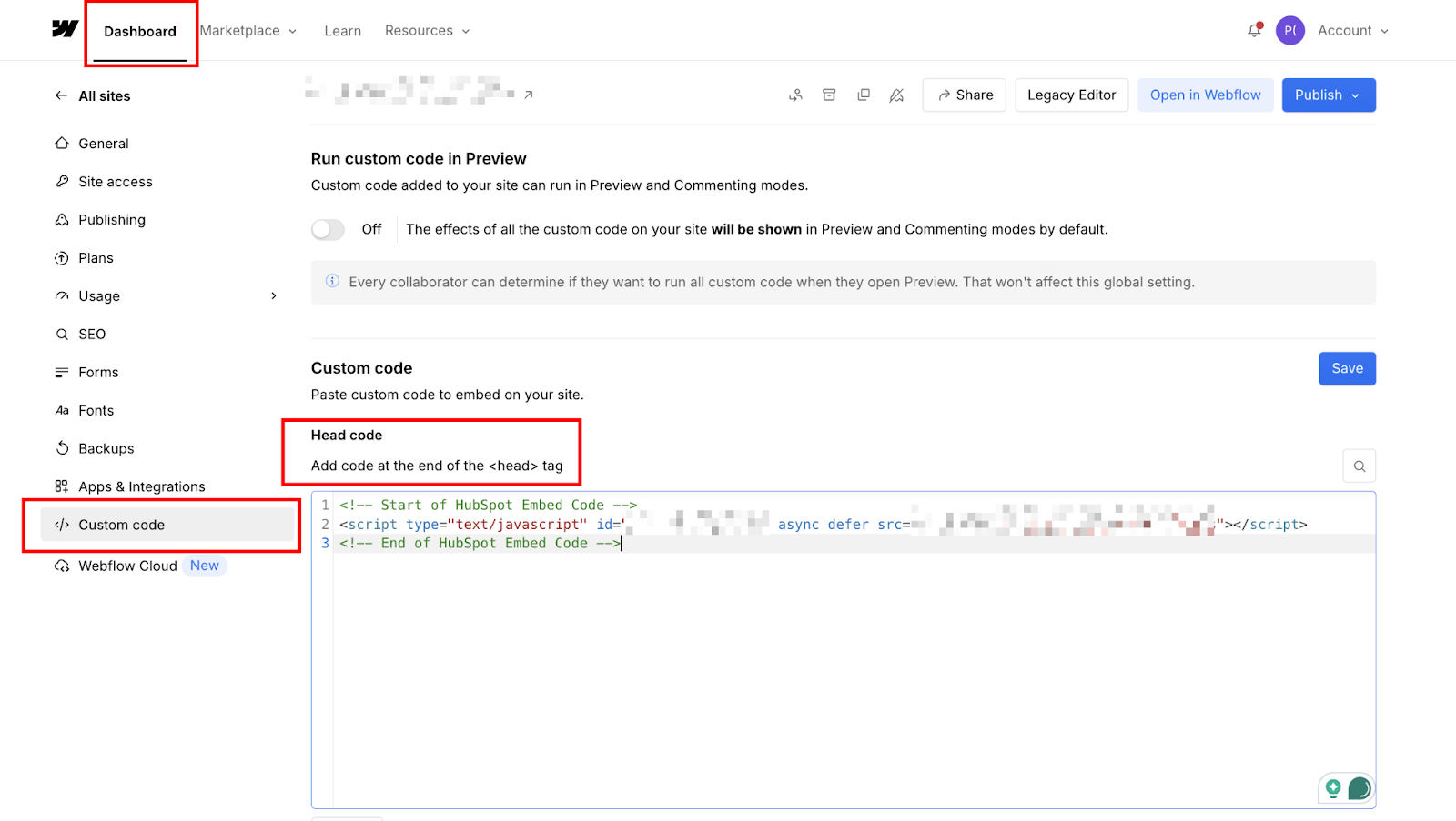 Step #4: Install HubSpot tracking code in Webflow