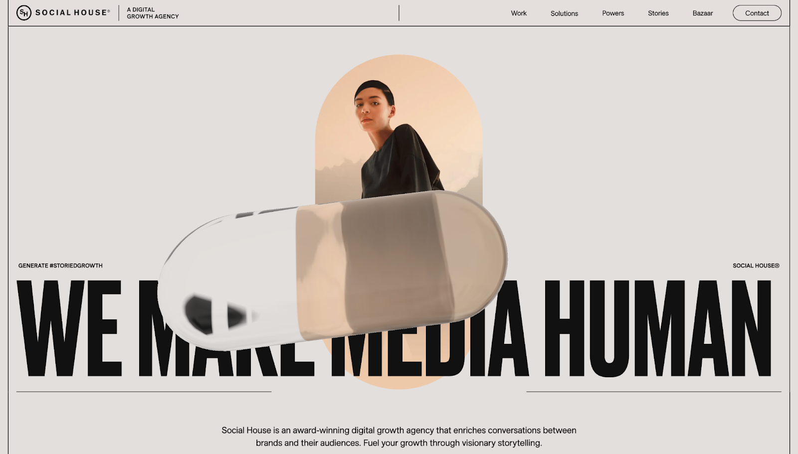 Social House’s microinteractions make its content-rich homepage easier to explore, showing how you can break heavy websites into more digestible UXs with subtle animations and motion cues. A floating, translucent pill turns attention toward the hero headline, while small hover shifts on navigation elements and CTAs tell you what’s clickable.