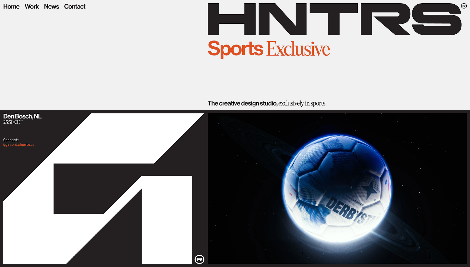 GRAPHICHUNTERS’ website features understated microinteractions that add an interactive touch without taking away from the content. The hero area shifts out while highlighted projects slide in, emphasizing sports imagery and typography to appeal to potential clients.