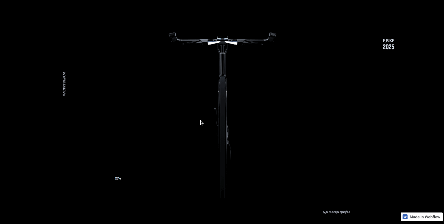 Clicking on the other navigational option, e.bike 2025, brings you to a black screen with a headlong view of a bike. My first instinct was to mouse over and try rotating it. Instead, a horizontal image of this bike pops up.