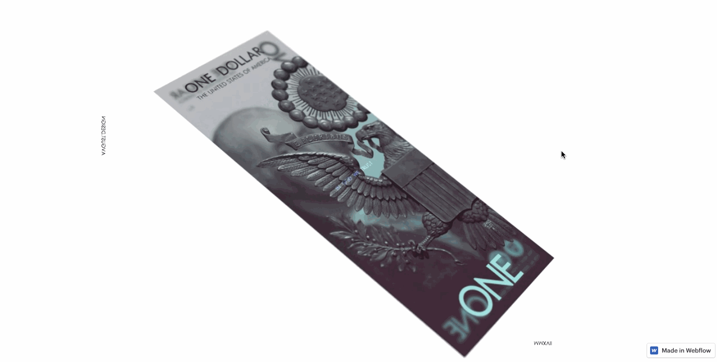 After staring into the void for a moment, you finally see the site’s tinily typeset navigation on the left hand side of the screen. Clicking on "US Dollar" makes a rotating dollar bill materialize, which upon further clicking brings you to a YouTube video showing this currency design. It's an impressive and smart-looking update. But there's no background information about this project — it would be great to know the context for this well-executed work.