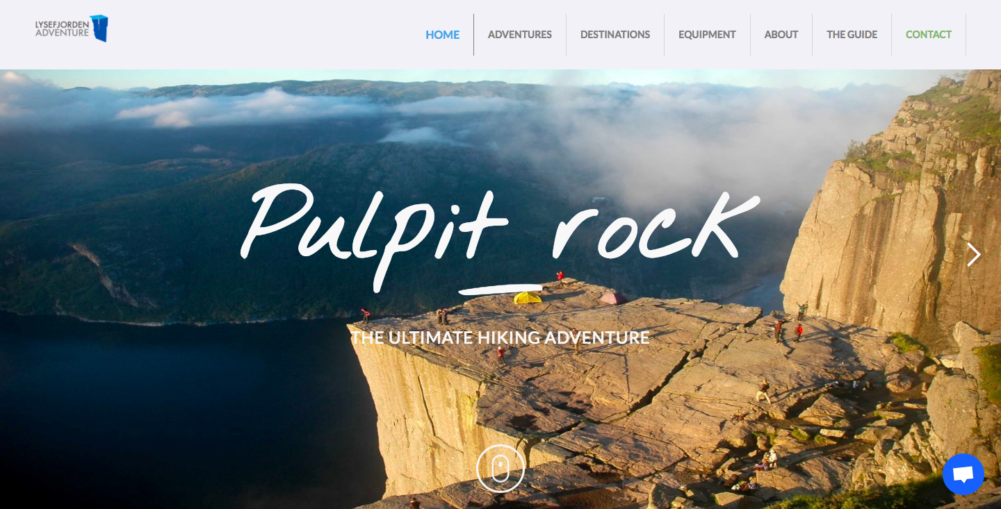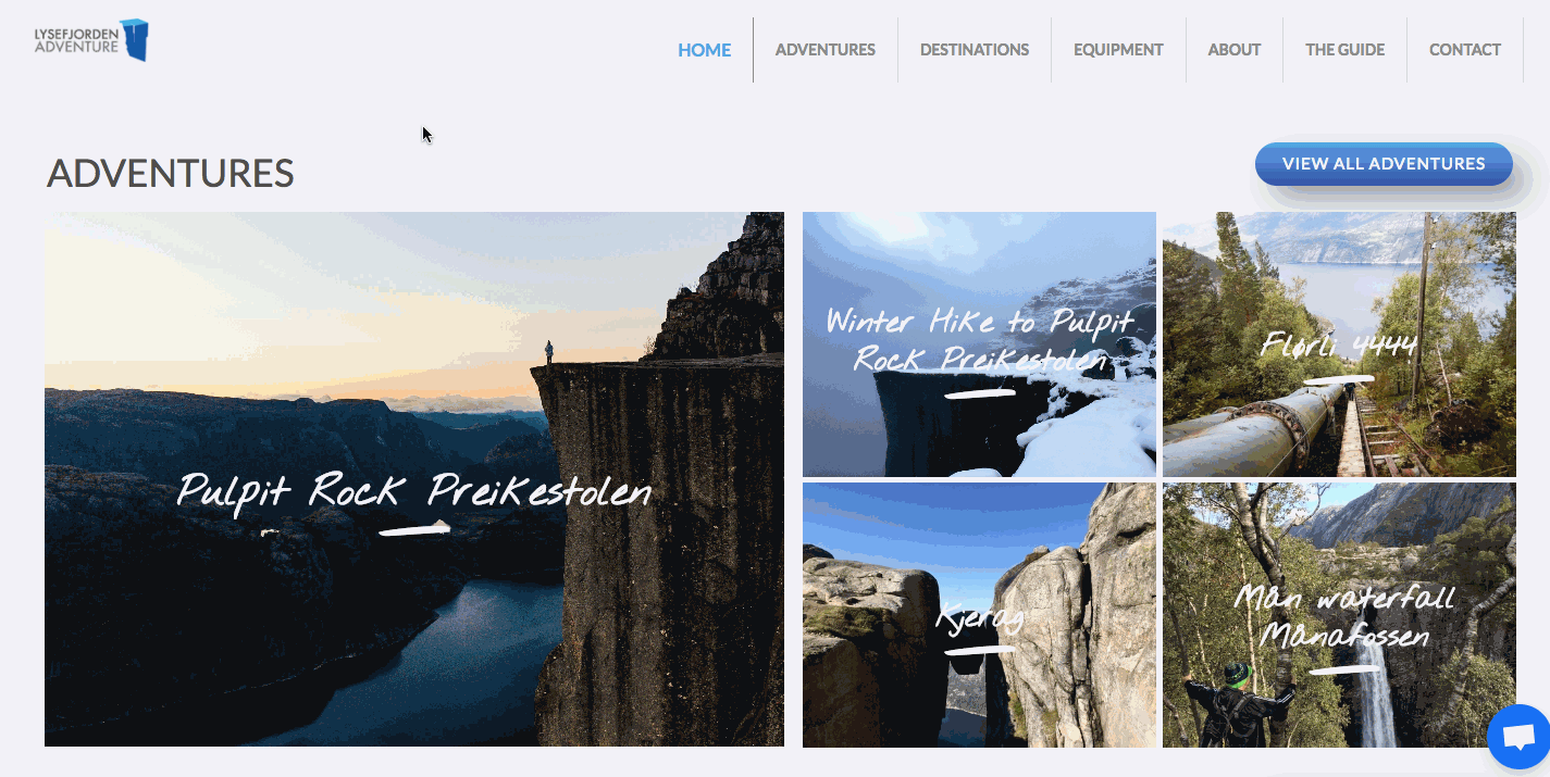 What’s also cool here is the gallery of adventures. Each image represents a macro view of a potential destination. Hovering over a photo of picturesque Nordic scenery triggers a microinteraction that brings the landscape closer. It’s a movement that feels like taking one step towards a new journey. Clicking the option to Learn More will get you even closer to your Lysefjorden adventure.