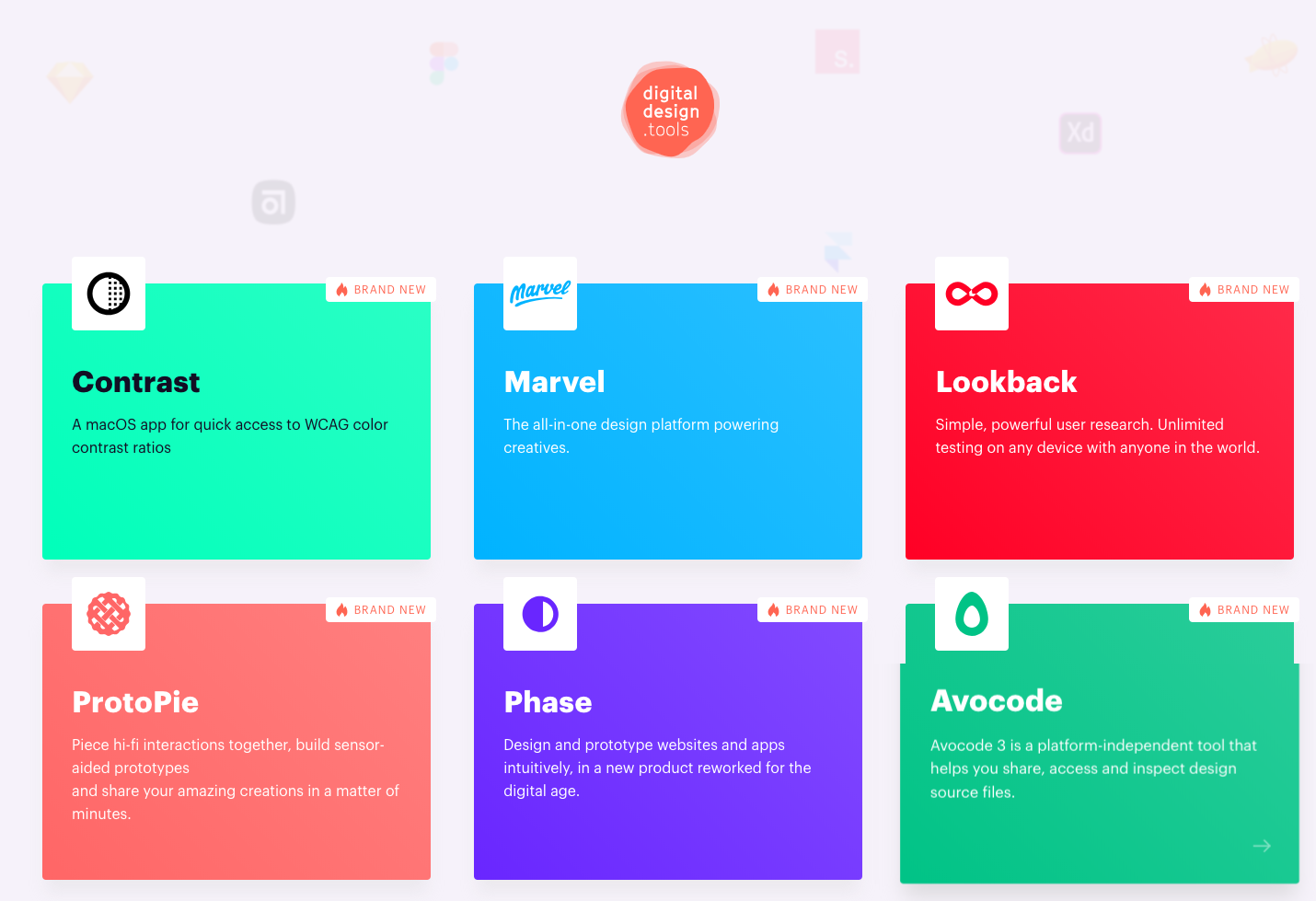 There’s no real organization outside of those tagged as new at the top. This is a good thing, because scrolling through, you’ll see many tools that you’re familiar with and many you aren’t. It allows for moments of discovery. It’s a great resource to no matter where you are in your design career.