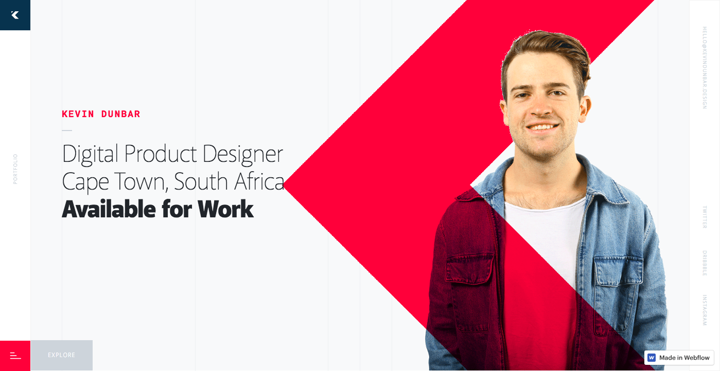 Kevin Dunbar is a digital product designer out of South Africa. His portfolio is full of strong geometry and use of negative space that makes all of the content easy to read and keeps things visually dynamic.