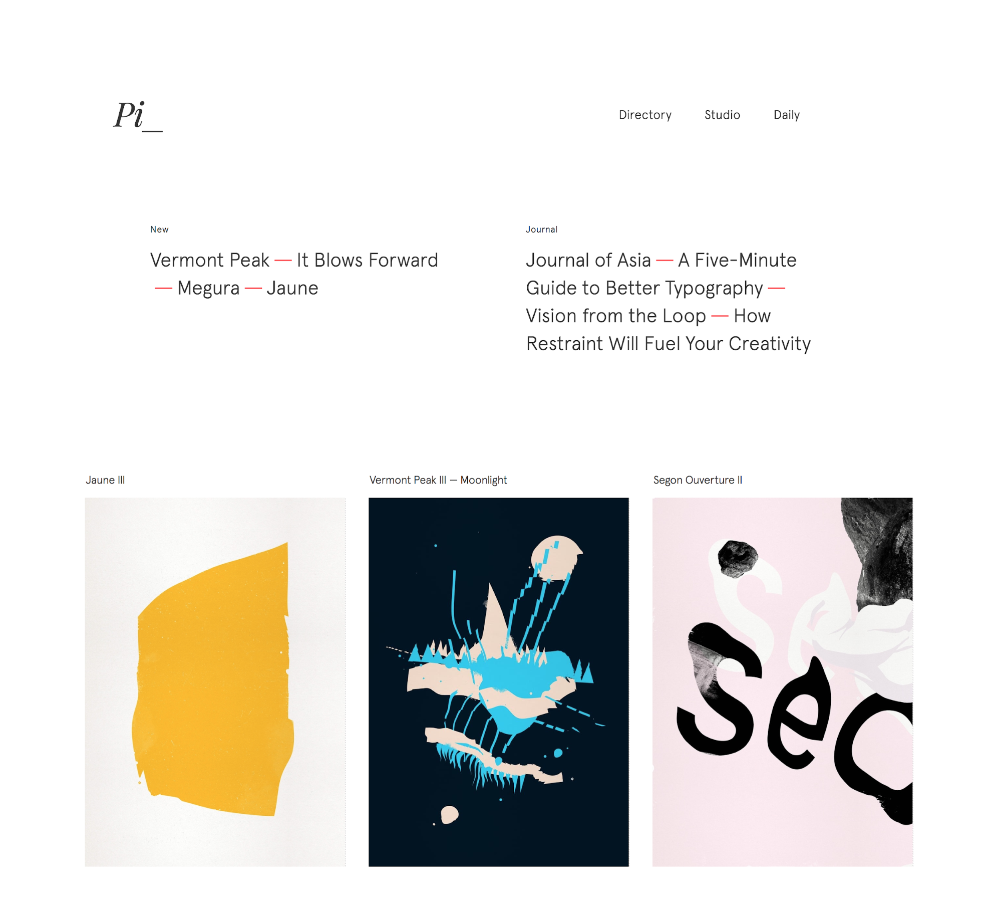 Pierrick Calvez is a visual designer in Shenzhen, China. Their multifaceted portfolio shows all of Pierrick’s creative pursuits in the visual arts, from monochromatic prints and photography to a five-minute guide on typography. Each piece offers a glimpse into Pierrick’s refined and sophisticated approach. This portfolio captures Pierrick’s varied interests and talents, providing both a well-rounded representation of who Pierrick as a person and artist, and offering useful content like a talk on how restraint will fuel your creativity.