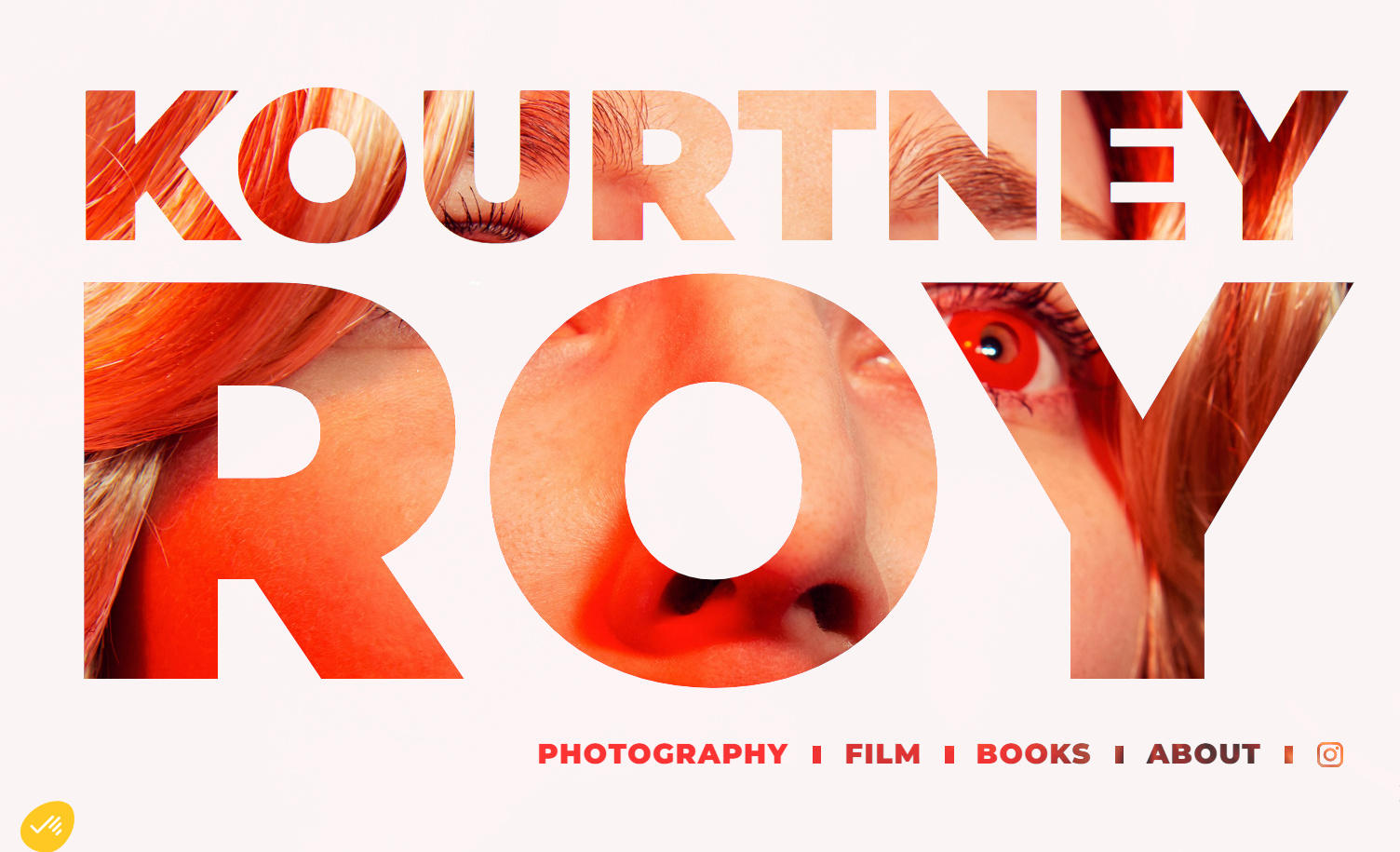 To create the landing page of photographer Kourtney Roy’s site, designer Gaël Roussel rotates through a set of background images underneath the text. This choice showcases Kourtney’s photos while adding visual interest — visitors are more likely to look longer because their brains are working to fill in the gaps in each image, leading them to spend more time on the page.