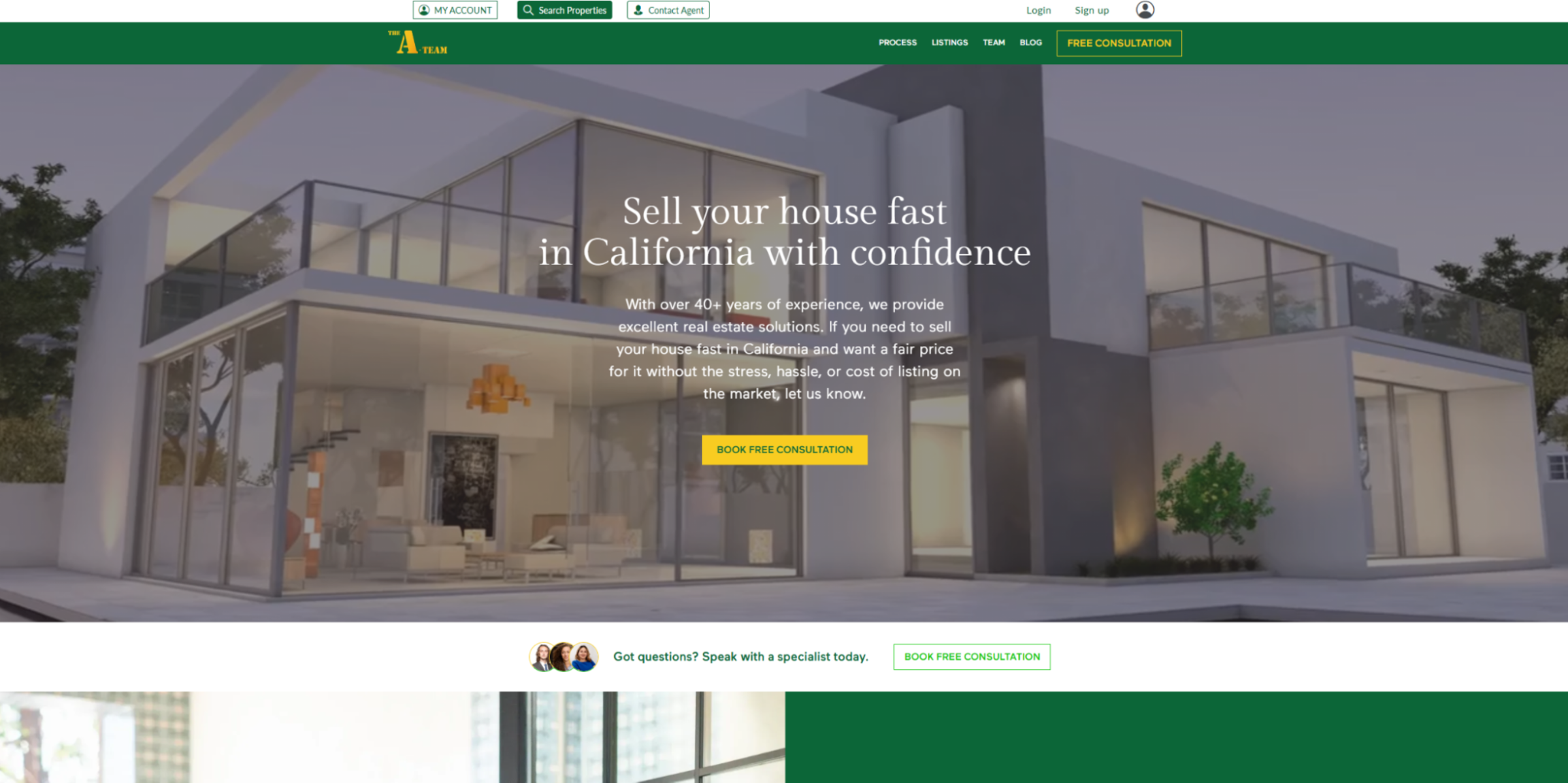 NextDoor Property is a home-buying real estate business that can provide visitors with a cash offer on their home within 24 hours. The way designer David Verduzco made this site efficiently sets a potential customer’s expectations about working with NextDoor. Just like Top Real Estate’s website, the homepage immediately describes what the service is about with a simple, direct tagline — “We want to buy your house” — so there’s no room for confusion.