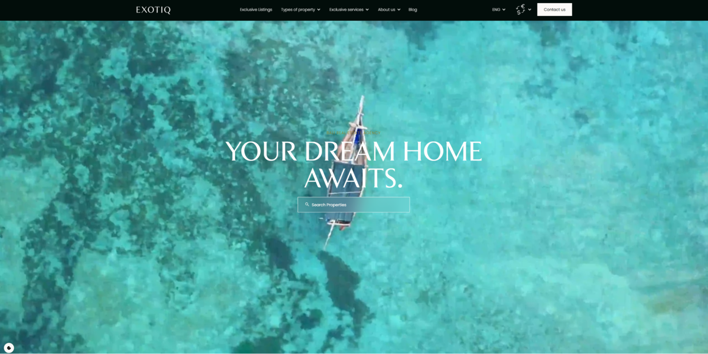Exotiq is a luxury real estate company based in Bali that represents commercial and residential properties. The website Simon Deridder made for them follows a traditional model, with testimonials and listings sorted by property type, but it also showcases the area’s unique vistas with several high-quality visuals and evocative text. The site uses buzzwords, like “hip,” “chic,” and “unspoiled nature,” to describe Exotiq’s properties, hoping to resonate with a specific kind of buyer.