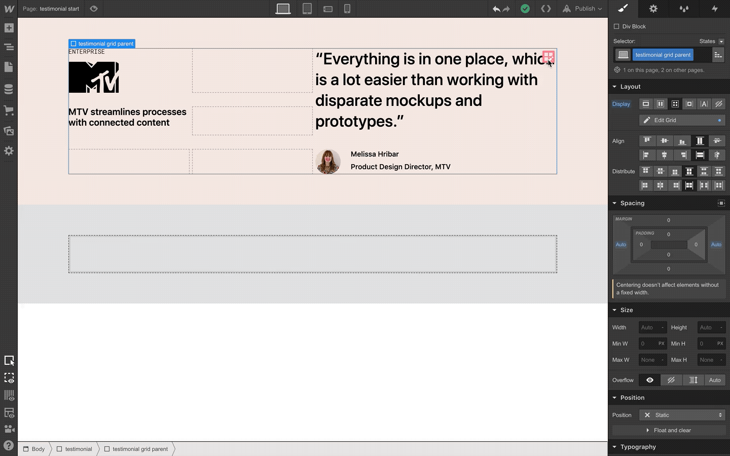 Experience the unprecedented ease, speed, and power of CSS grid layout in Webflow — with all-new on-canvas controls.
