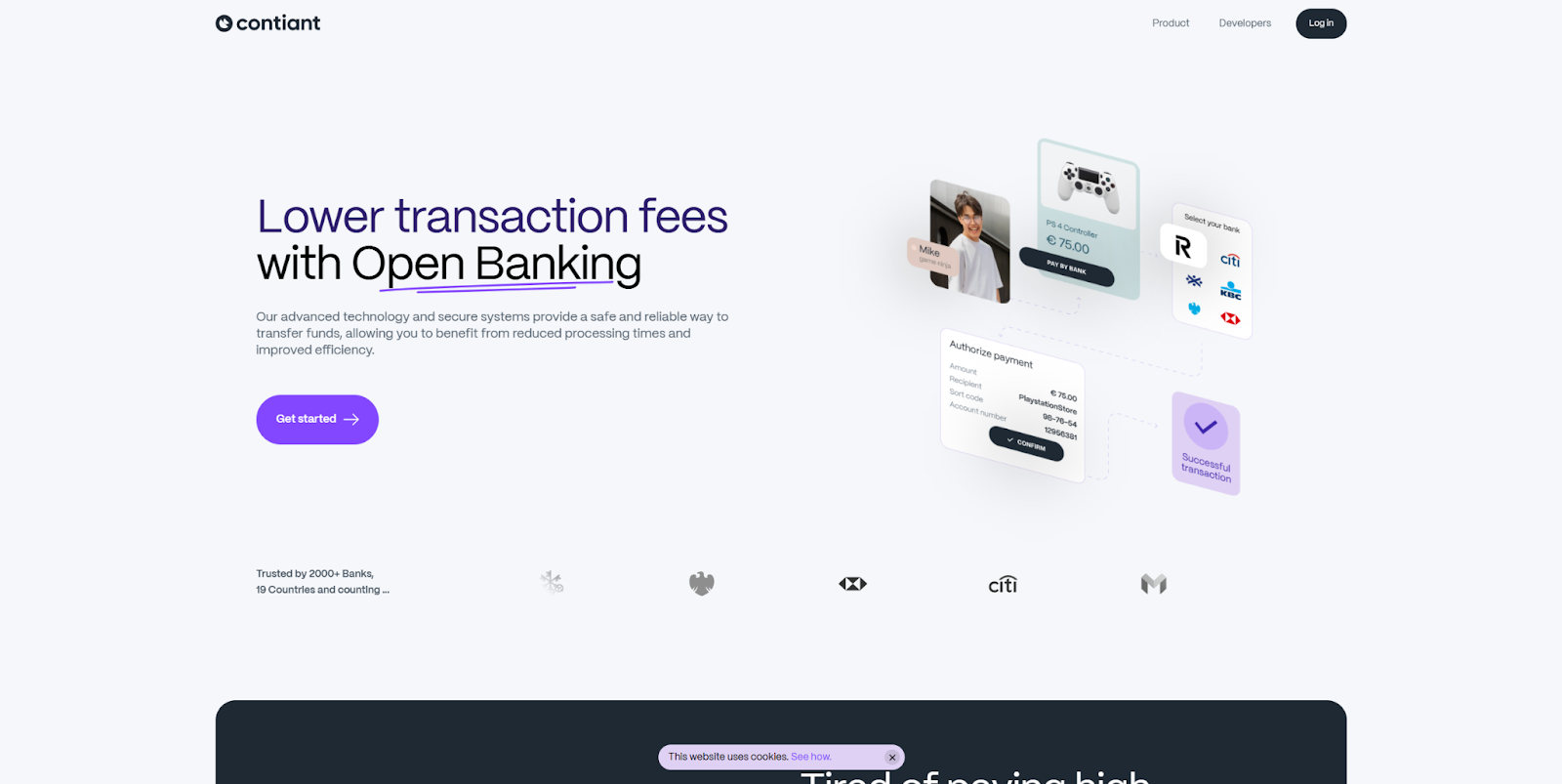 Contiant is an open banking service whose modern startup website, designed by StanVision, carefully unpacks everything there is to say about the service in a series of animated rows. The colorful, scrolling sections near the bottom of the page break down three key features of the product, along with concise text and relevant screenshots for clarity. If your service is similarly complex, breaking it down into digestible segments like this is a great way to explain the benefits without overwhelming visitors.