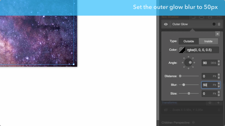 And finally, set your outer glow’s blur to 50px to give the element more depth. That’s it!