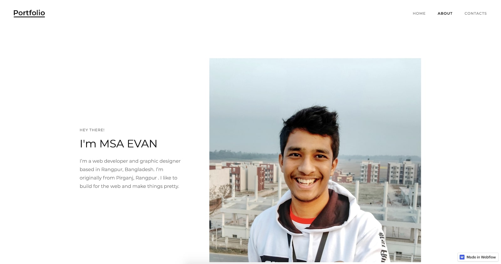 Winner for best pre-built project goes to Shahriar Azad Evan! Using a free template, Shahriar rebuilt his portfolio in Webflow. It’s safe to say that you can easily modify any Webflow template to create a great looking portfolio.