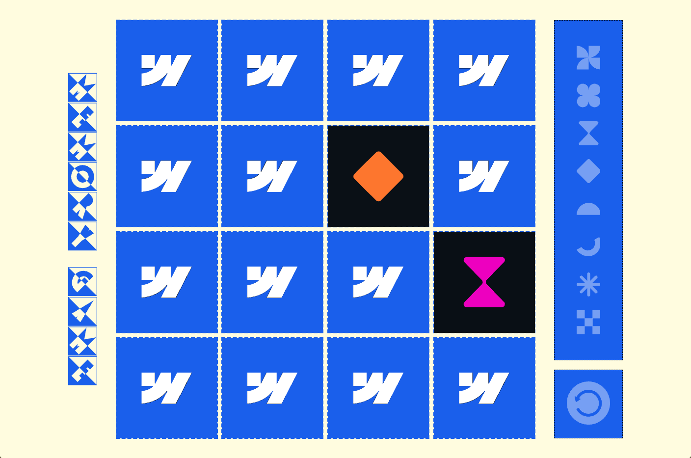 The third challenge required designers to morph shapes or bring line drawings to life using DrawSVG and MorphSVG. Youness Benammou, a freelance Webflow developer, and his 16-year-old daughter Ambreen worked together on their project to reimagine a typical memory/match game with his Mini Memory Game. In the game, users must match cards of custom objects (like a four-leaf clover), animated with MorphSVG. Users can flip cards to reveal and match them.