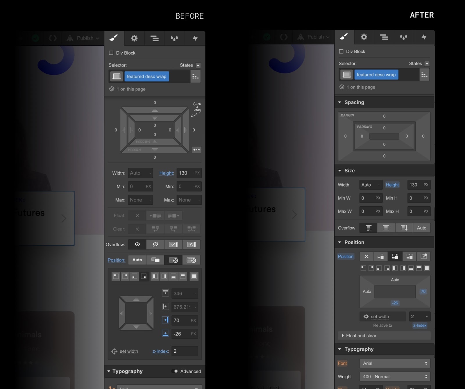 To improve Designer performance, streamline our new feature development, and bring our UI up to date, we’ll be rolling out a refreshed style panel over the first month of 2019. More details on how we’ll be phasing that change out soon.