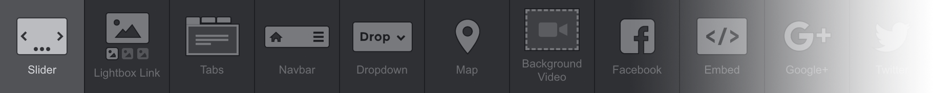 Quickly drag in complex elements like sliders, tabs, background videos and more to build your website layouts faster.