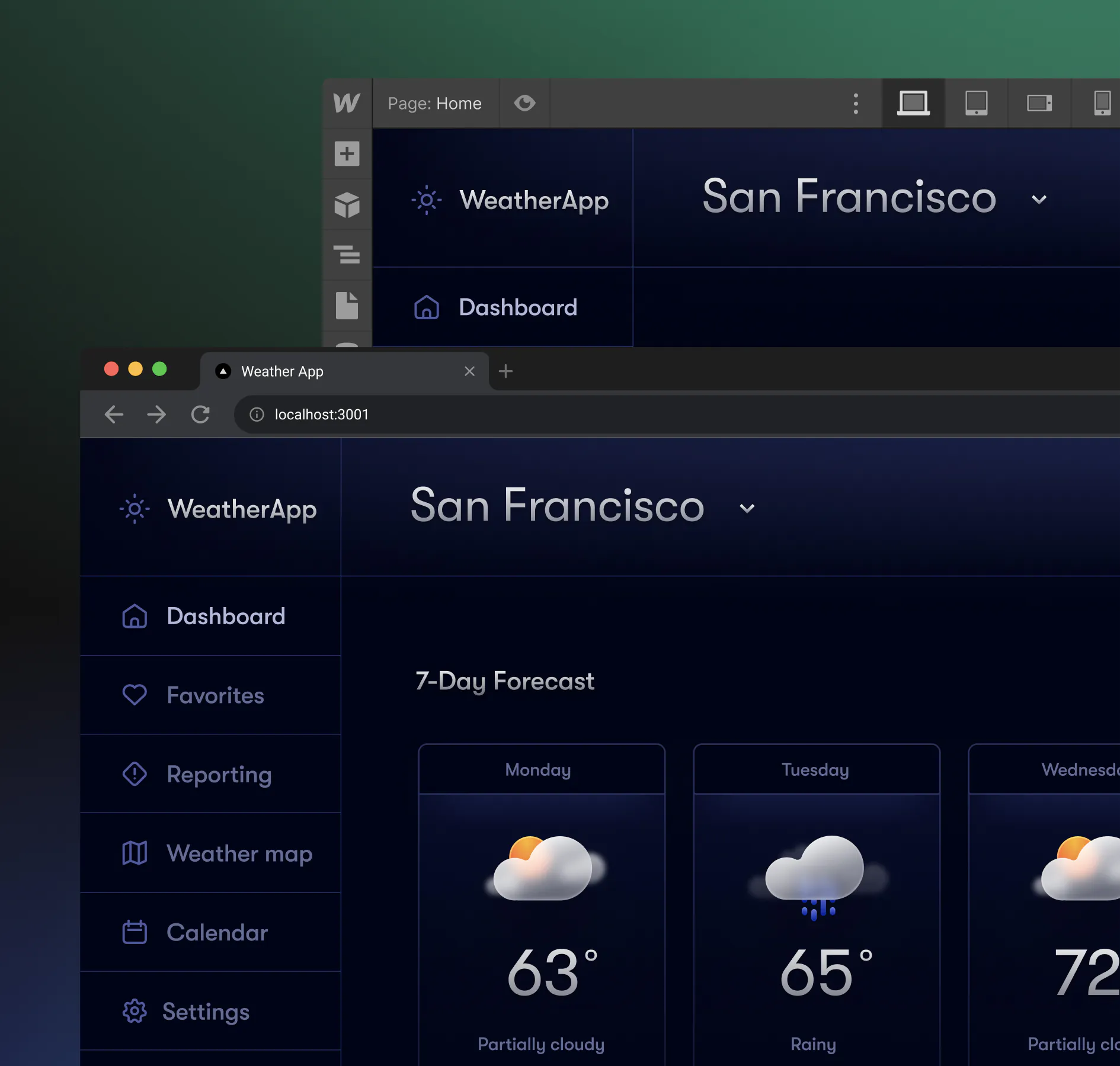 Build production-ready React components visually in Webflow, so you can bring new products and apps to market faster.