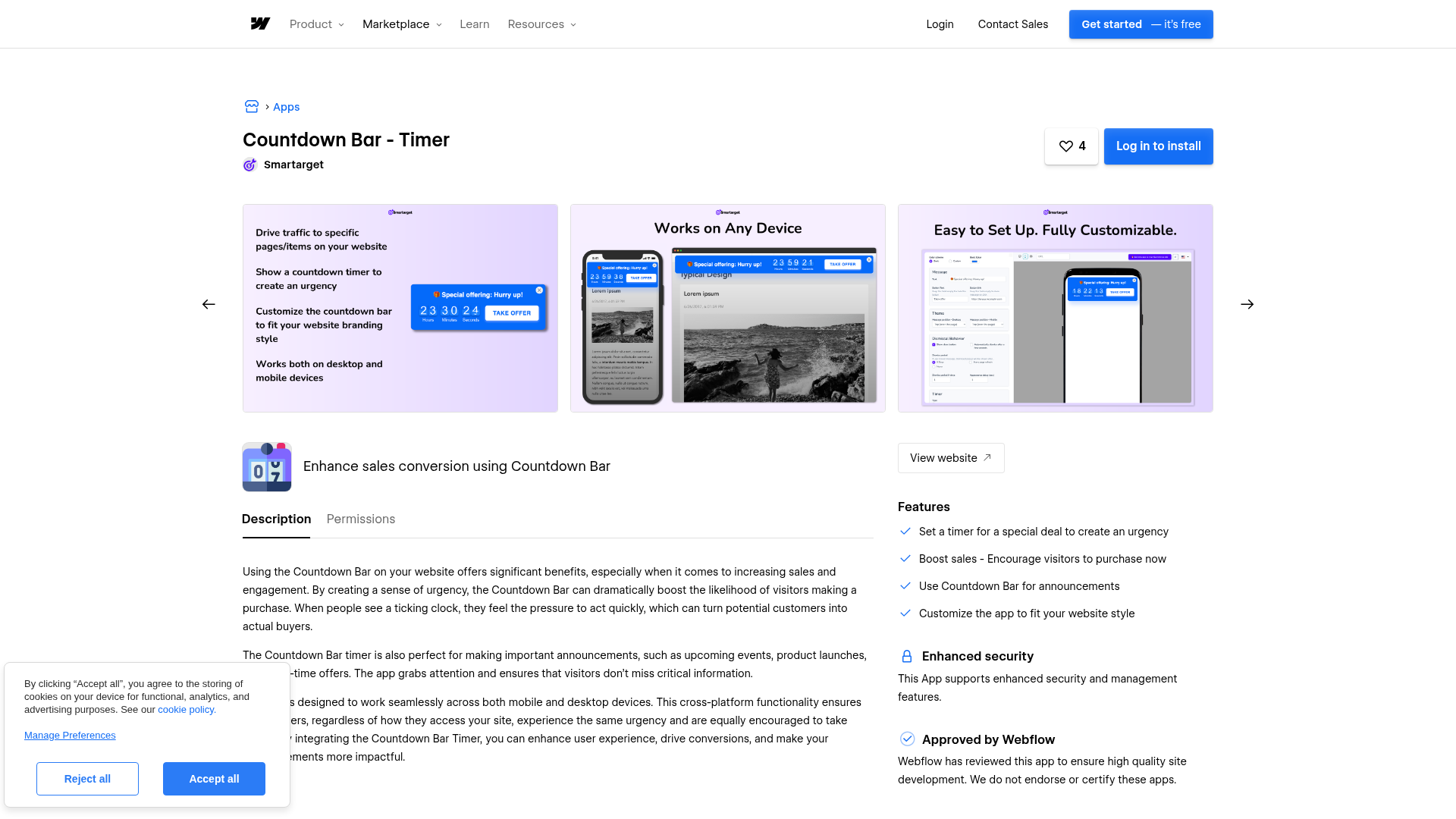 Marketing and e-commerce teams use Countdown Bar - Timer with Webflow when they need visible deadlines on landing pages or storefronts — specifically to reinforce sale end dates, event registration windows, or product launch schedules without building timer logic in custom code.