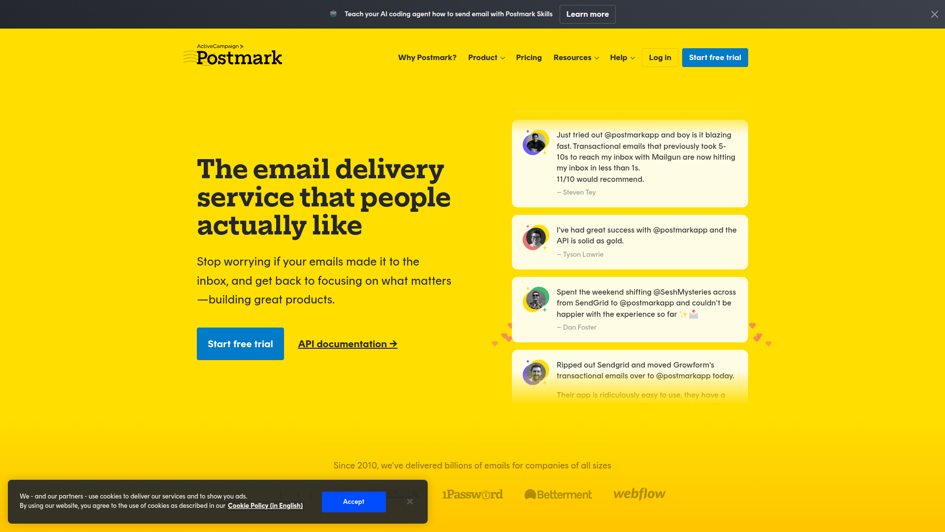 What is Postmark? Postmark is a transactional email delivery service with an HTTP REST API and SMTP interface for application-triggered emails. Now part of ActiveCampaign, it separates transactional and broadcast traffic onto distinct IP ranges to protect sender reputation across both.