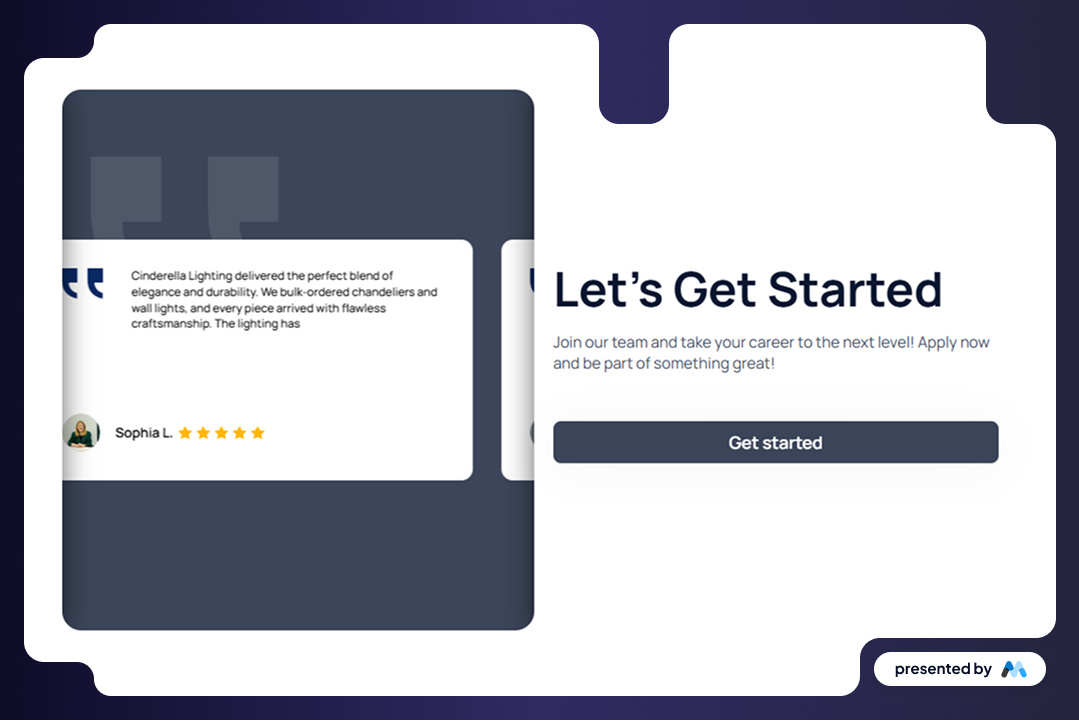 The call-to-action template that strategically integrates user testimonials to build trust and drive conversions. By combining social proof with a compelling CTA, this layout helps boost credibility and encourages users to take the next step.