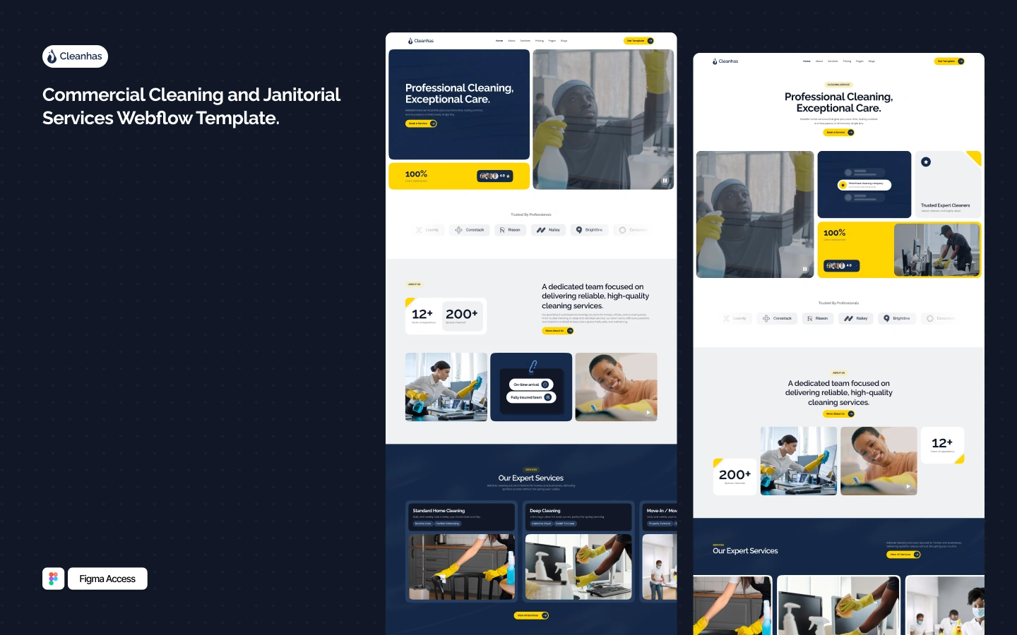 A professional cleaning services website template designed to showcase reliable home and office cleaning, exceptional care, and high-quality results—helping service businesses build trust, bookings, and long-term client relationships.