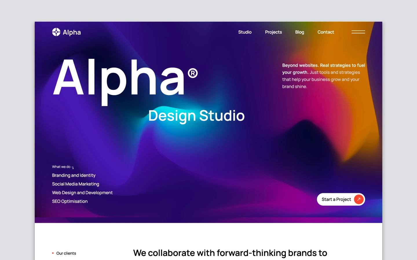 Alpha Studio is built to adapt to your brand. Changing colors, fonts, and layouts is quick and simple. Every section is carefully crafted to help you tell your story while keeping visitors engaged.