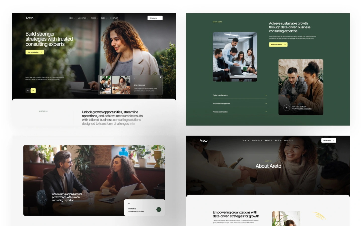 Areto Webflow template is a professional, high-end digital solution for Business Consulting firms. Built to convey authority and trust, it provides all the necessary, beautifully designed pages to launch your advisory practice online.