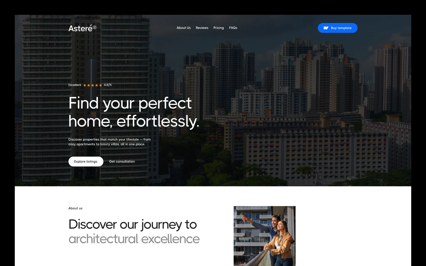 Launch your professional property or architecture website today with Astere. Perfect for real estate.