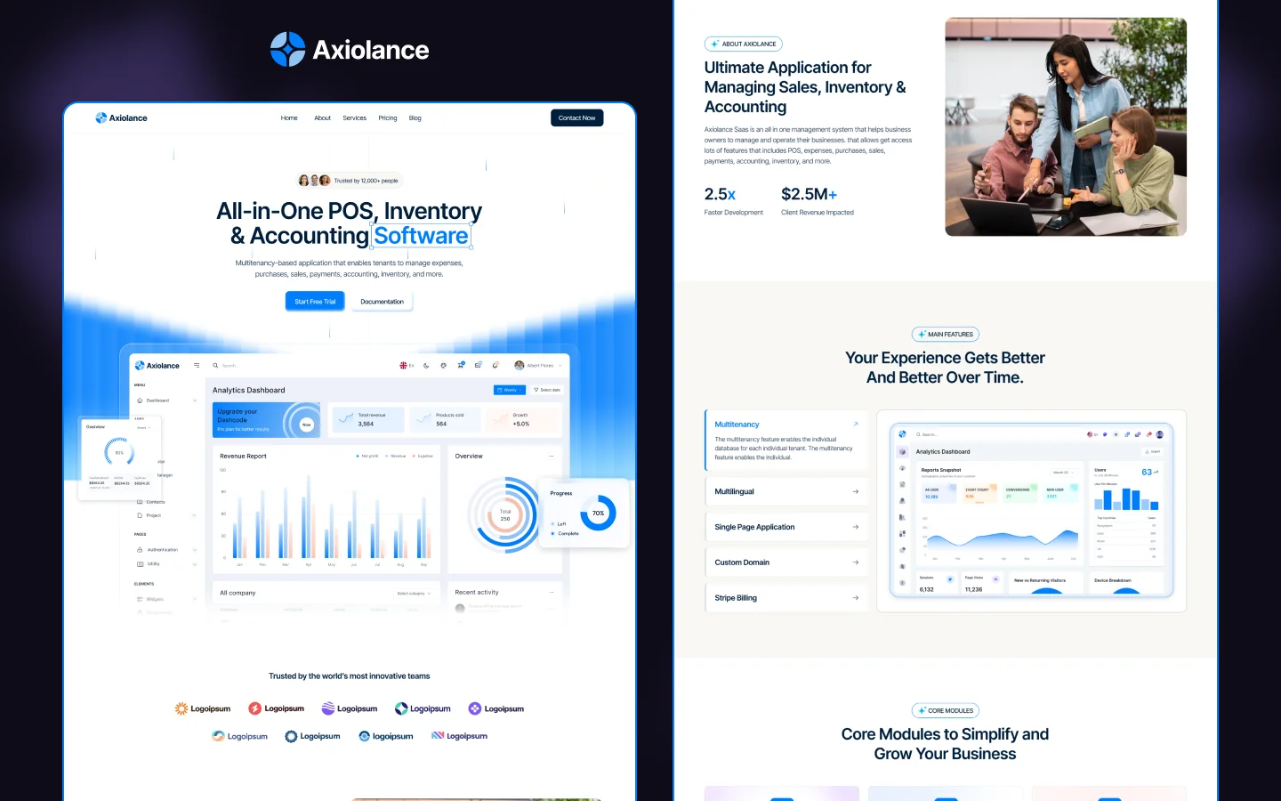 With bold typography, responsive design, smooth interactions, and a visually engaging layout, Axiolance ensures your software product looks professional at first glance.