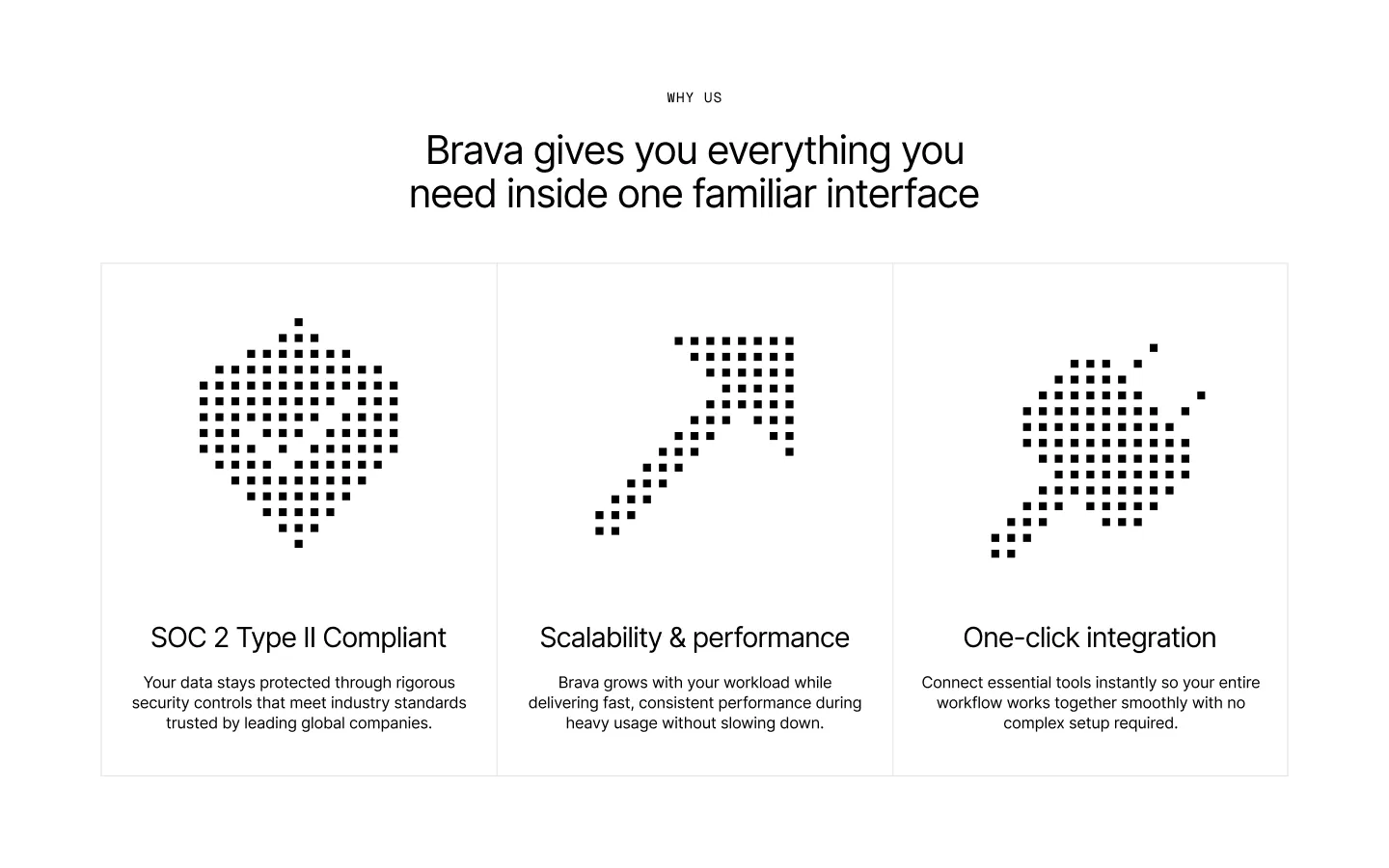 Brava is a webflow template for AI startups, SaaS, and dev tools. Featuring a clean aesthetic and subtle animations, it offers a polished structure to showcase generative technology, build trust, and convert visitors into users effortlessly.