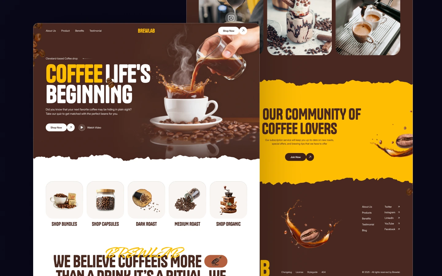 Brewlab is a modern Webflow template for coffee shops, cafés, and specialty roasters. With clean layouts, warm visuals, and smooth interactions, it helps showcase your brand, menu, and premium coffee in a fully responsive, easy-to-customize design.