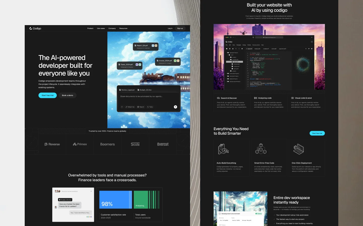 Codigo is a dark, modern SaaS UI kit with a playful AI-inspired personality. Designed for startups and tech teams, it blends bold visuals, smooth motion, and clean layouts to create engaging, future-ready product experiences.