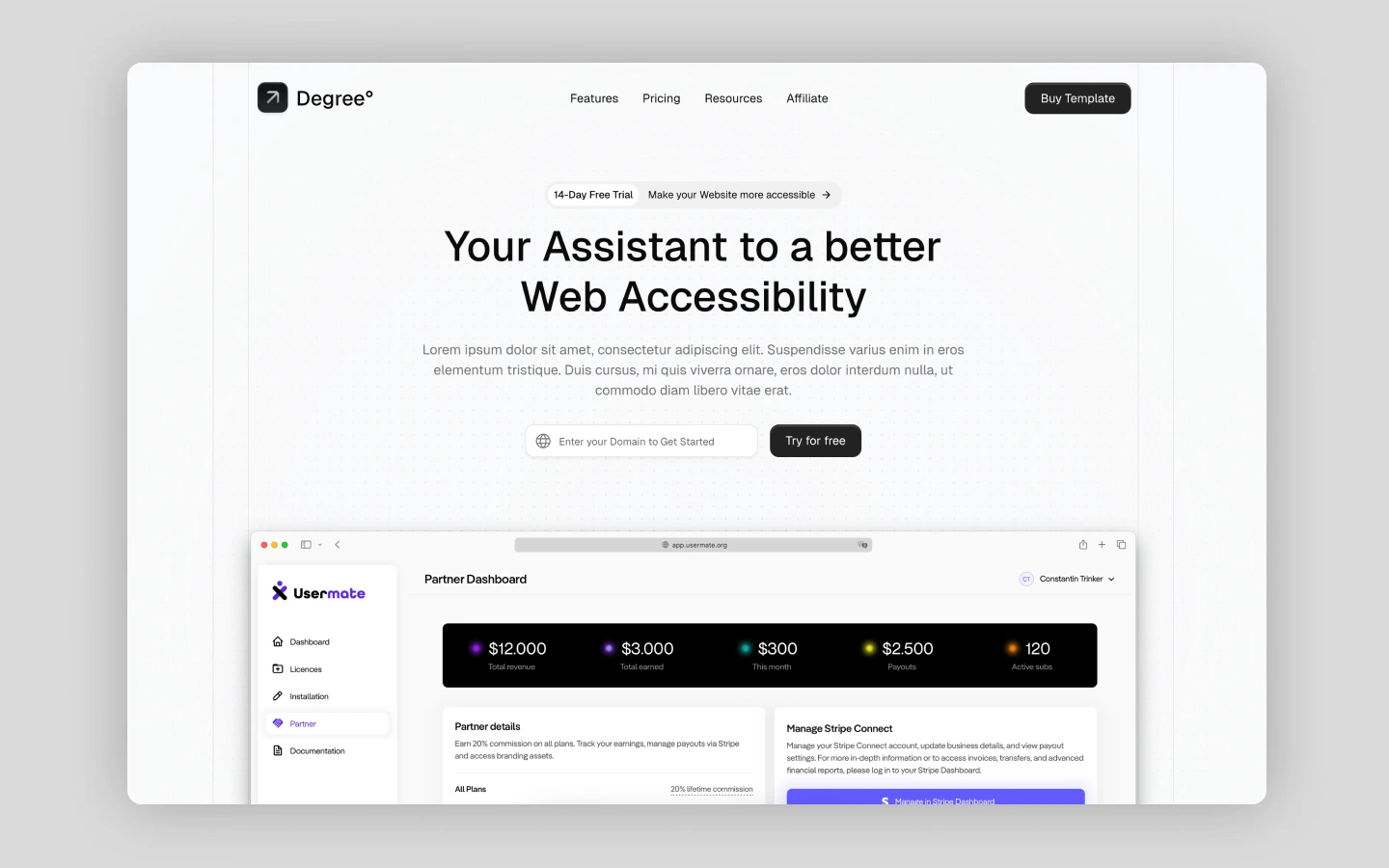 Whether you’re launching an AI tool, SaaS application, or any type of digital product, Degree provides the ideal foundation. Its modular design makes it simple to adapt for different industries, while keeping the professional look and feel that today’s users expect.
