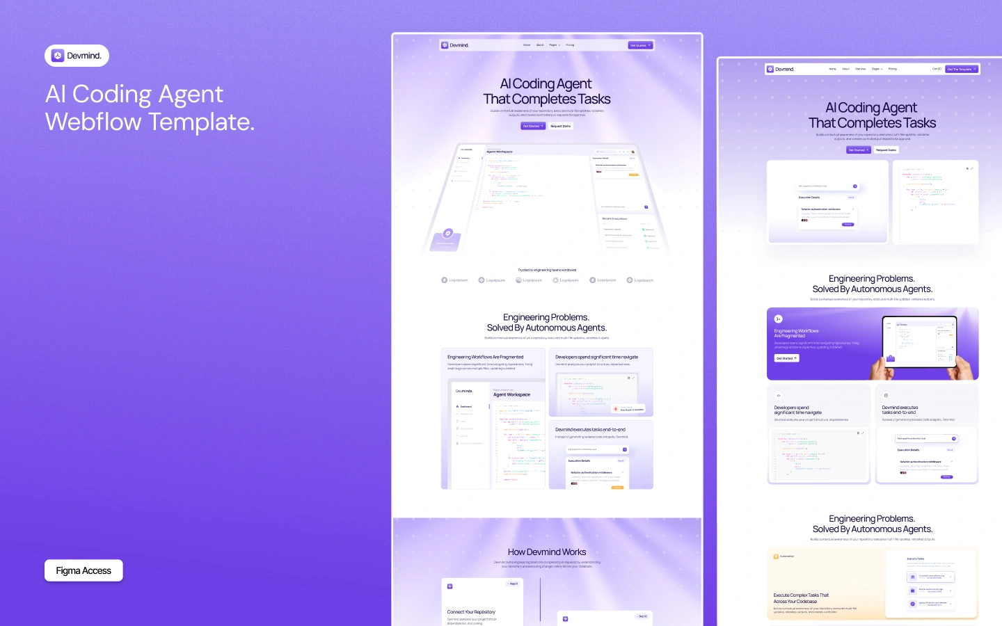 Built with a clean and technology-forward layout, Devmind highlights advanced capabilities such as automated code generation, task execution across codebases, and intelligent development assistance. It provides a structured way to present features, product workflows, and platform benefits—making it ideal for companies building AI-driven developer tools. Devmind helps communicate innovation clearly while positioning your product at the forefront of AI-powered software development.